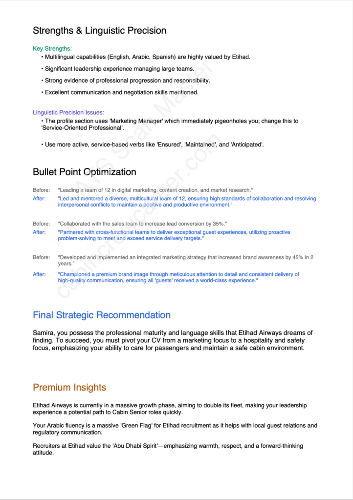👉 We identify missing keywords airlines expect — so your CV passes ATS filters instead of getting rejected.