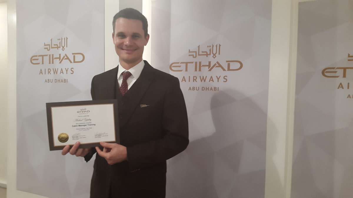 Successful completion of the Cabin Manager training. Etihad Airways, Abu Dhabi, United Arab Emirates.